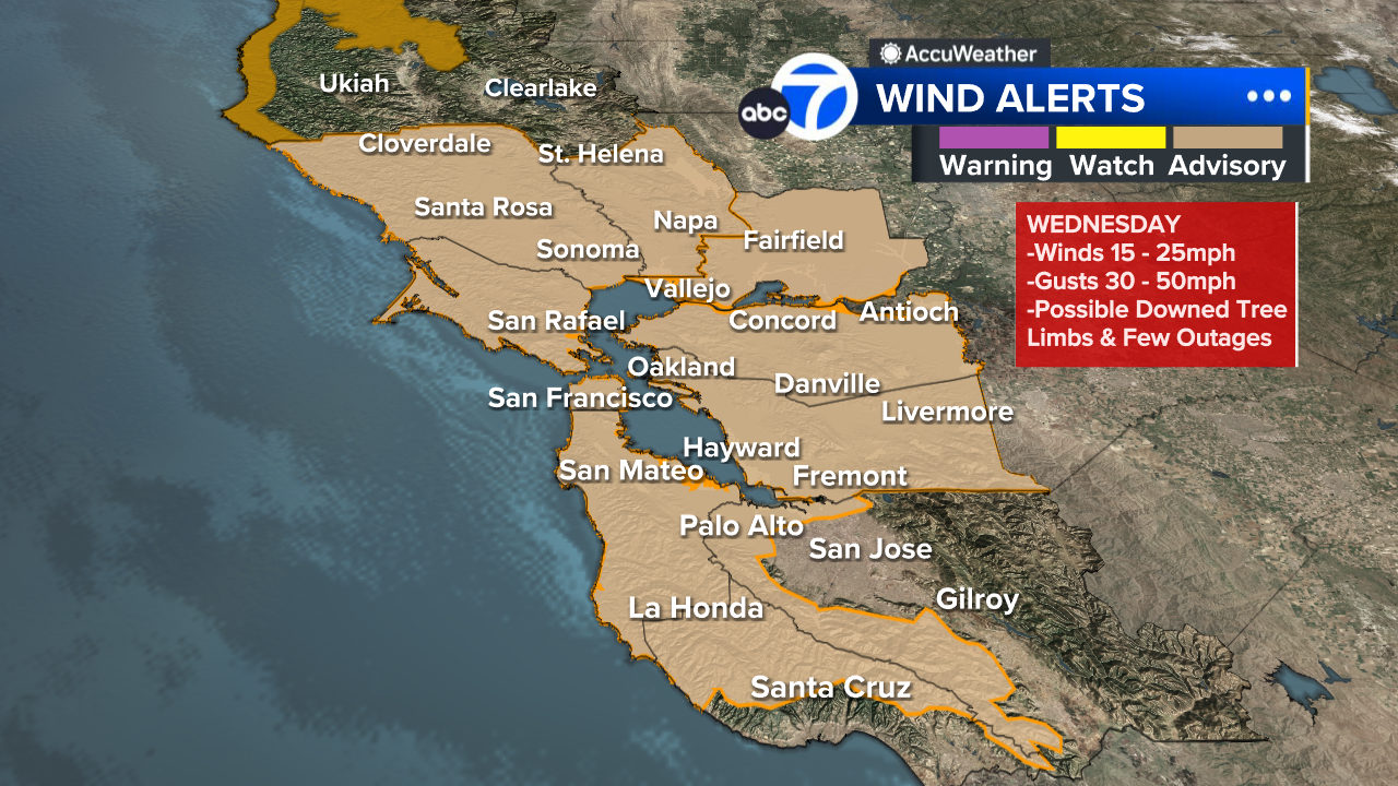SAN FRANCISCO (KGO) — An impactful storm will arrive early Wednesday morning with downpours and strong, potentially damaging winds. This will be a level 2 on the ABC7 Exclusive Storm Impact Scale.